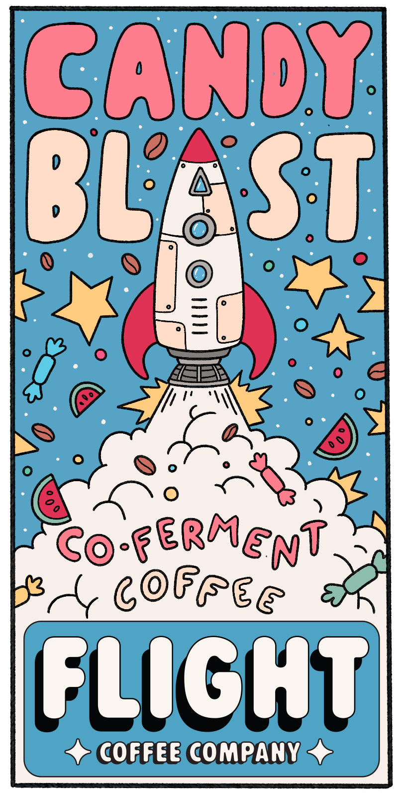 Introducing our newest star single origin coffee, Candy Blast! This is the second coffee in our co-ferment line. It is a Colombian coffee that uses the Anaerobic Fruit Co-Ferment processing method.